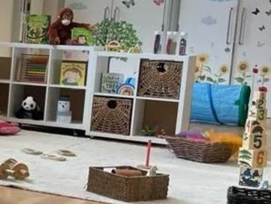 Our zones consist of the following: baby carpet, kitchen role play, story / library, arts and crafts, small world (trains), small world (dinosaurs), music area, construction area, outdoor learning space, sensory/messy play, project based learning zone. Our small world and project based learning zones can change depending on the children's interests.