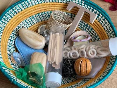 We view the environment as an inspirational educator. We have transformed our setting to include a healthy range of natural and real resources alongside the traditional nursery plastic toys such as trains, cars and animals. Plastic toys, while excellent for small world and imaginary play, can often can only be used in one way. Natural resources open up more possibilities for children to explore, be creative, experiment and use their imagination. For younger babies, natural resources found in treasure baskets serve as a way for them to experience and develop their senses. Babies might engage in their earliest forms of verbal communication as they babble with joy while they explore a treasure basket alongside an adult. For older children, they may draw a face on a wooden peg to make a small doll, dress it up and so on. With the same, wooden peg they may glue on some green tissue paper to make a tree. The creative possibilities with natural resources and the opportunities for imaginative play are quite vast.